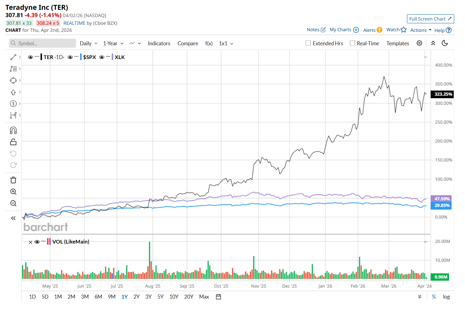 TER has rallied 271.3% over the past 52 weeks, significantly outpacing both the S&P 500 Index's ($SPX) 16.7% return and the State Street Technology Select Sector SPDR ETF’s (XLK) 29.3% uptick over the same time period.
