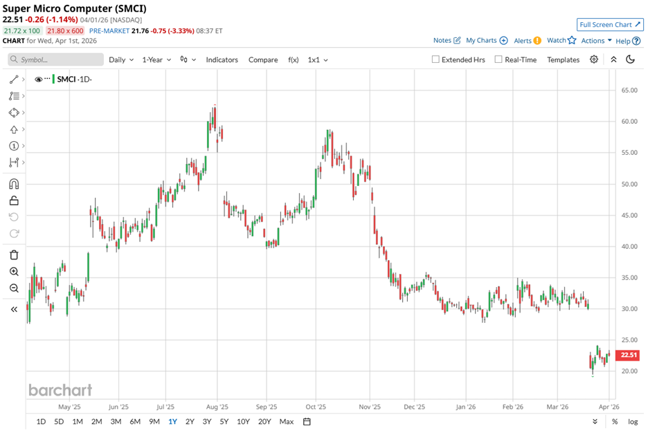 While Super Micro itself has not been charged, the situation has started to spill over into market perception. The stock has fallen 27.5% in the past month since the case surfaced on March 19, highlighting the quick erosion of confidence when governance risks come into focus.