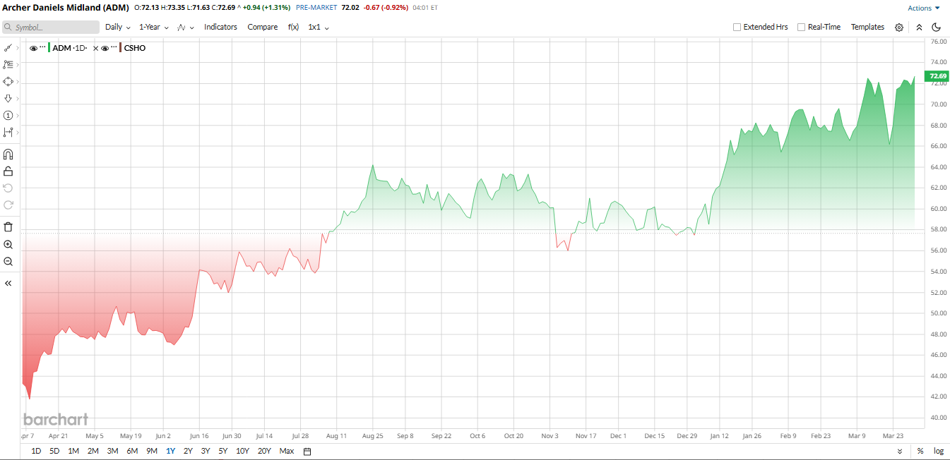 On March 30, technical traders perked up. CappThesis highlighted ADM’s chart as “breaking out,” implying the stock could see a substantial move higher.