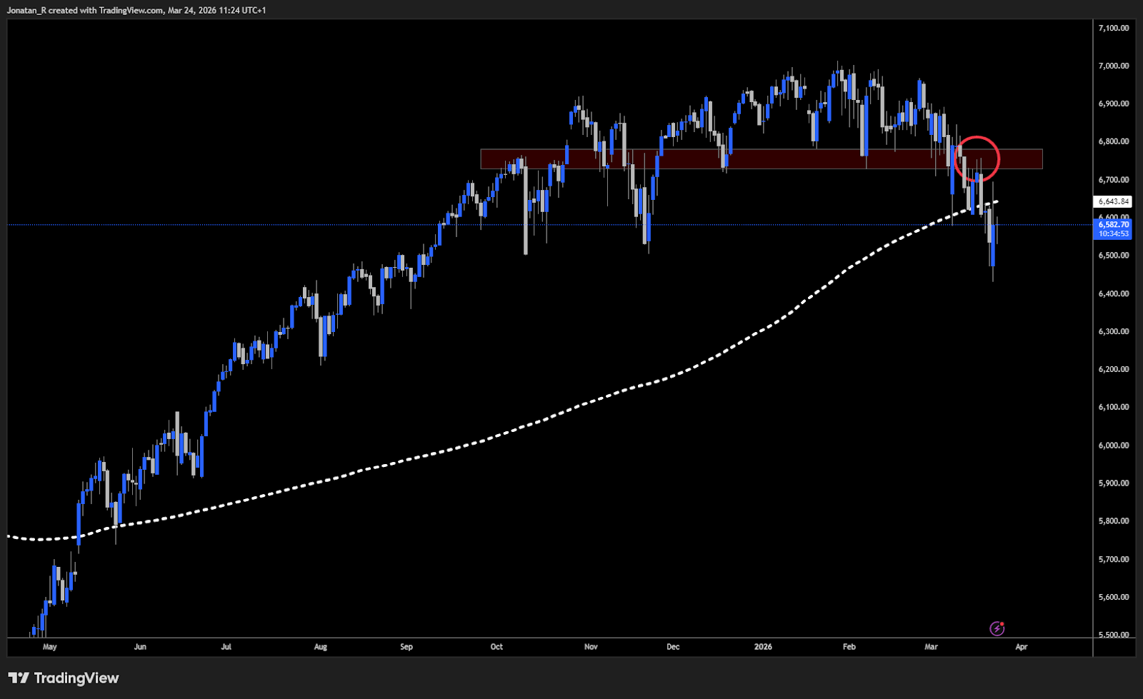 The key zone to watch sits between 6,731 and 6,782. This range acted as support in December and early February, with the index bouncing from it multiple times before finally breaking down in early March. It is now resistance, and a daily close above it could be the clearest technical signal that the bulls are regaining control.