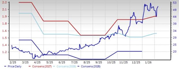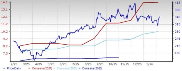 Amkor has appreciated 102.6% in the trailing 12-month period. The Zacks Consensus Estimate for Amkor’s 2026 earnings has increased 7 cents to $1.59 per share over the past 30 days.