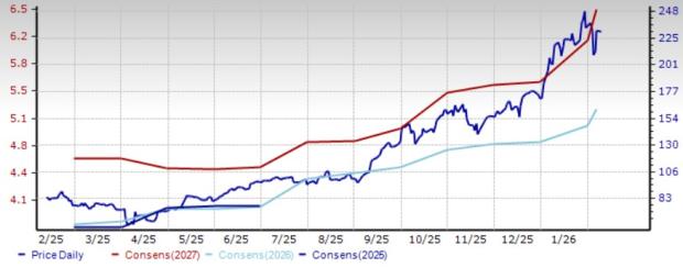 Lam Research stock has appreciated 175.9% in the trailing 12-month period. The Zacks Consensus Estimate for LRCX’s fiscal 2026 earnings has increased 8.5% over the past 30 days to $5.22 per share.