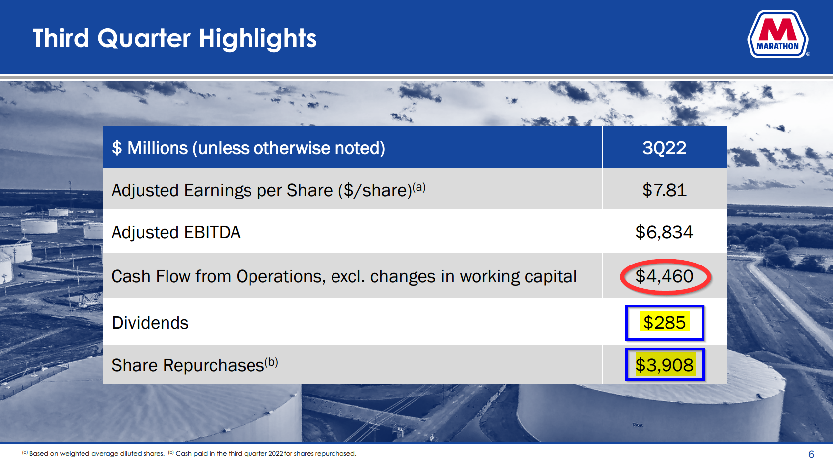 Moreover, the company said it completed $15 billion in capital return to shareholders. Marathon Petroleum indicated it is going to start further buybacks on its remaining $5 billion in share buyback authorization starting in November.