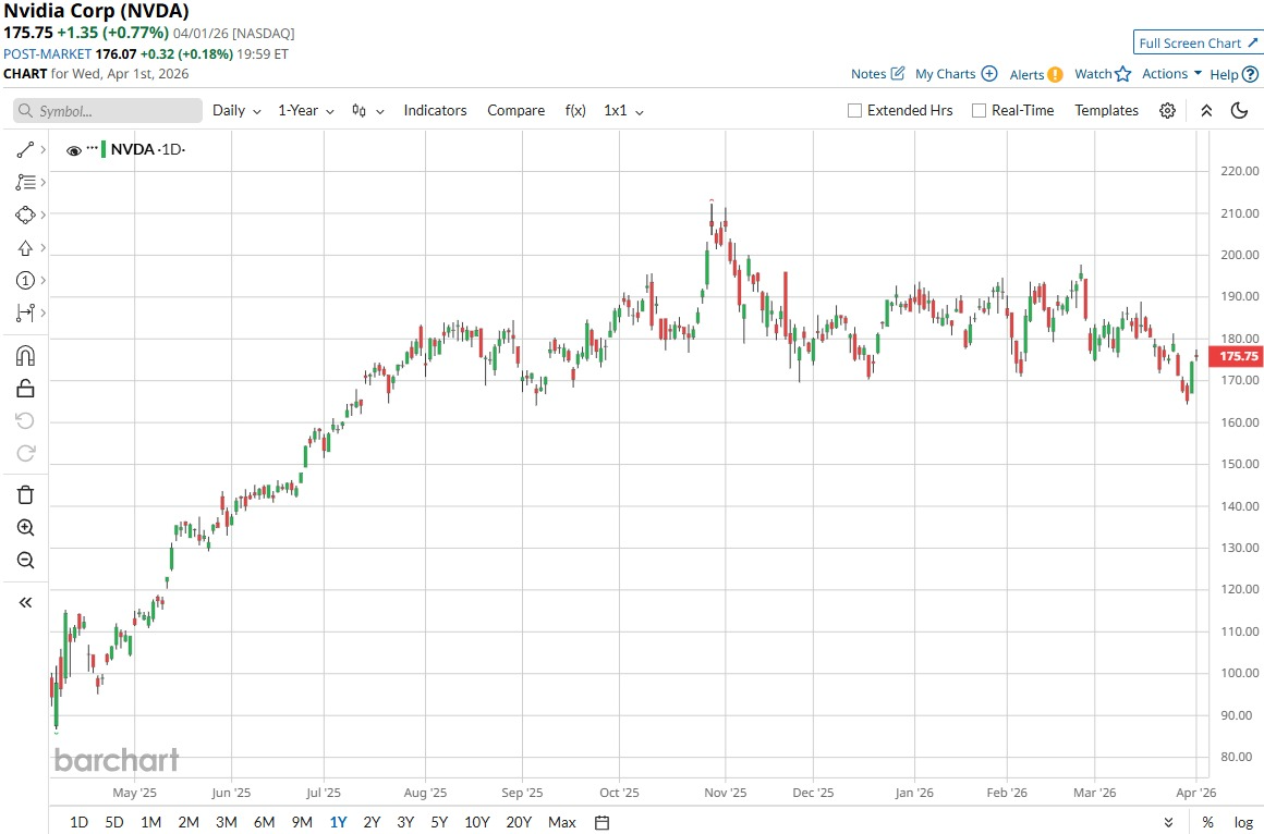 The stock is trading at $177.39 as of April 2, down 4.88% year-to-date (YTD) but up 60.65% over the past 52 weeks.