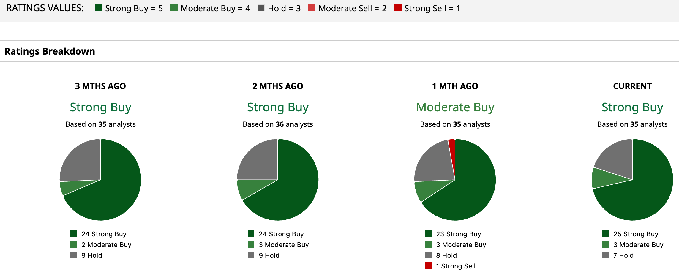 Nvidia carries a consensus “Strong Buy” rating from 49 analysts. It also has an average price target of $268.80, implying roughly 51.5% upside from the current price.