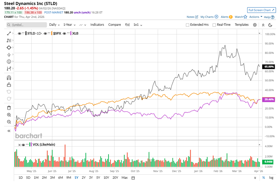 STLD stock has outperformed the S&P 500 Index’s ($SPX) 22% gains over the past 52 weeks, with shares up 41.5% during this period. Similarly, it outperformed the State Street Materials Select Sector SPDR ETF’s (XLB) 15.9% returns over the same time frame.