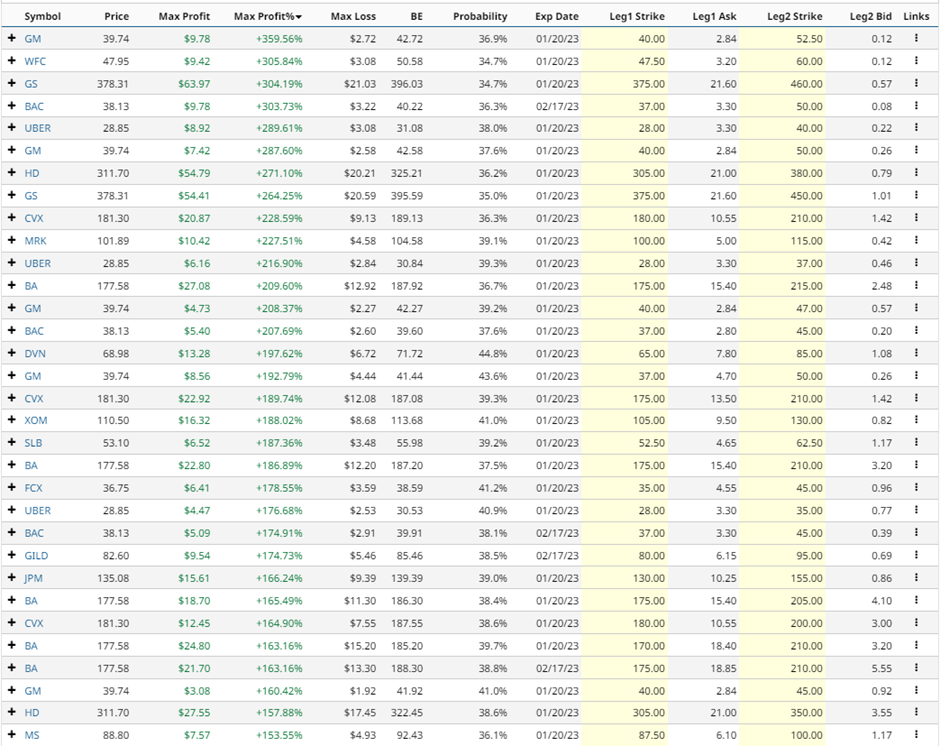 Let’s take a look at Barchart’s Bull Call Spread Screener for November 11th: