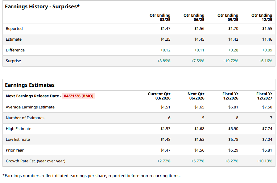 For fiscal 2026, analysts project the company’s EPS to be $6.81, up 8.3% from $6.29 in fiscal 2025. Moreover, its EPS is expected to rise by roughly 10.1% year over year (YoY) to $7.50 in fiscal 2027.