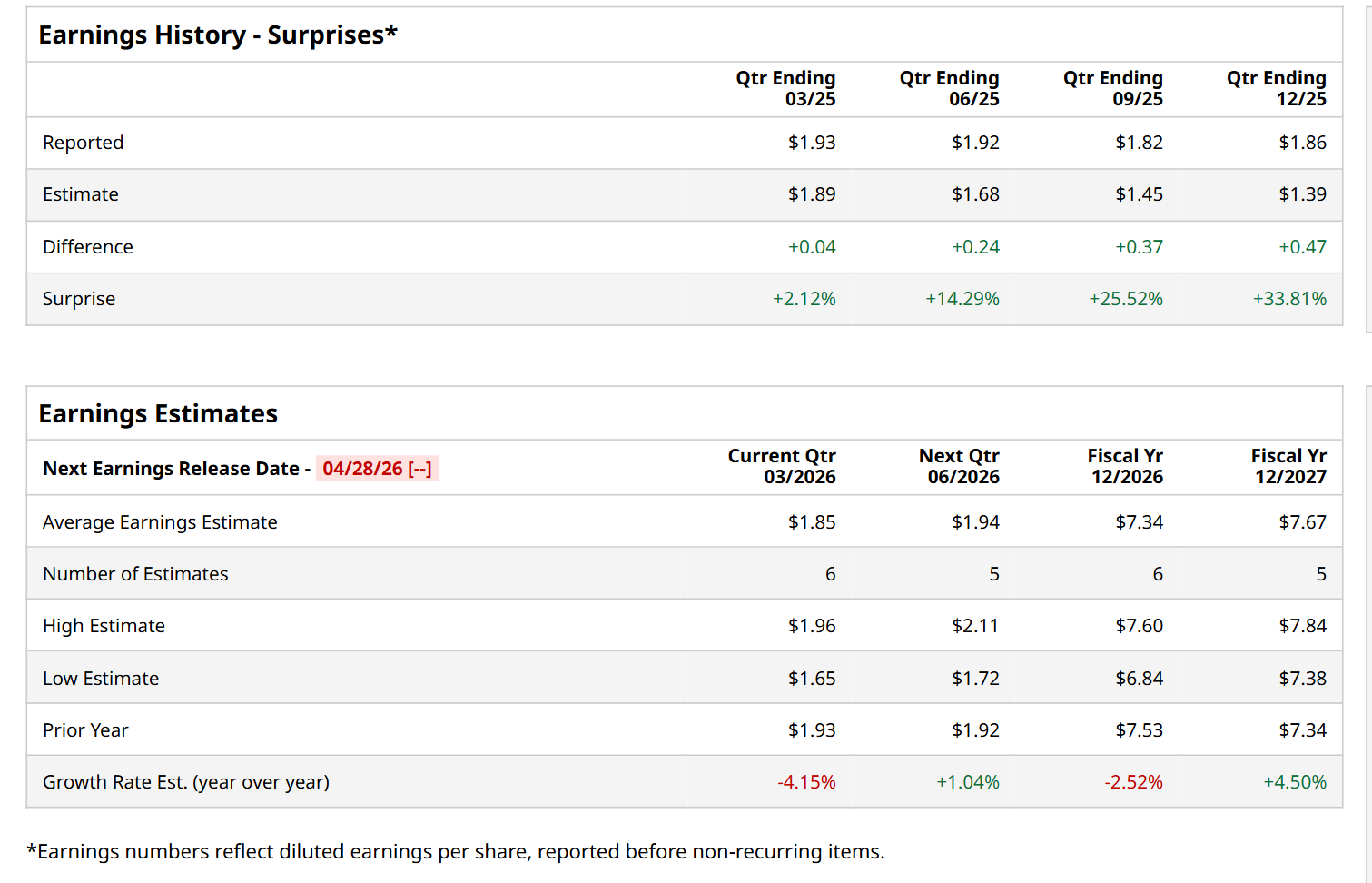 Dallas, Texas-based Kimberly-Clark Corporation (KMB) manufactures and markets personal care products. Valued at a market cap of $31.9 billion, the company’s extensive portfolio includes well-recognized brands such as Huggies, Kleenex, Kotex, Cottonelle, Scott, Depend, and Poise. It is expected to announce its fiscal Q1 earnings for 2026 before the market opens on Tuesday, Apr. 28.
