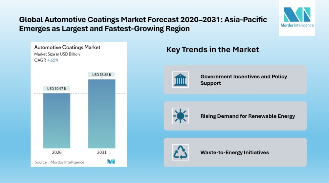 To view the original version on ABNewswire visit: Automotive Coatings Market Size Expected to Grow from USD 30.97 Billion in 2026 to USD 38.82 Billion by 2031, Driven by OEM Demand & Shift Toward Sustainable Coatings