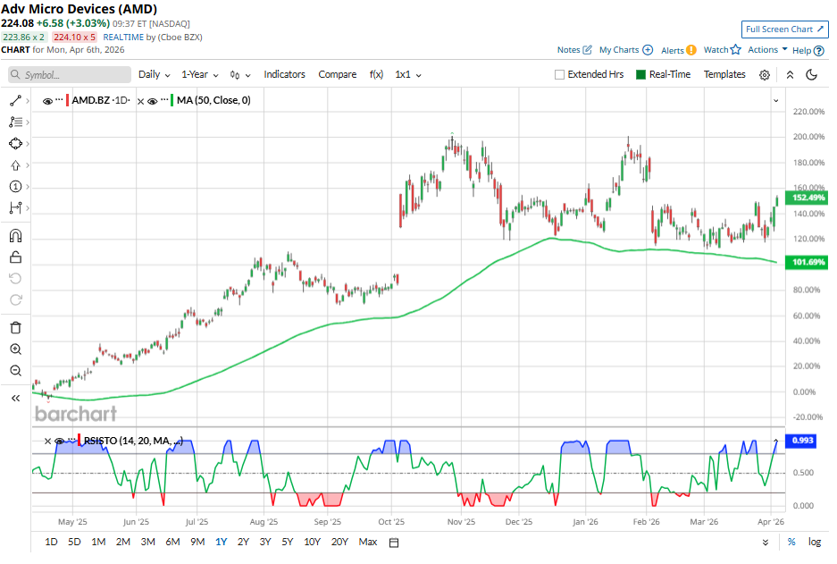 Shares of Advanced Micro Devices (AMD) have moderated after a solid rally over the past year. Although the stock remains up about 157% over the last 12 months, it has retreated more than 18% from its all-time high of $267.08. Broader macroeconomic and geopolitical uncertainty continues to weigh on investor sentiment and may continue to keep the stock volatile in the short term. However, AMD’s outlook remains strong, suggesting that the recent pullback presents a buying opportunity for long-term investors.