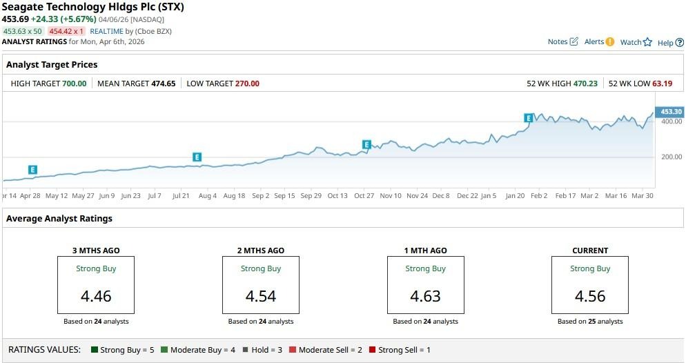 According to Barchart, the consensus rating on STX stock is a “Strong Buy” currently, with price targets as high as $700, suggesting it could rally more than 55% through the remainder of 2026.