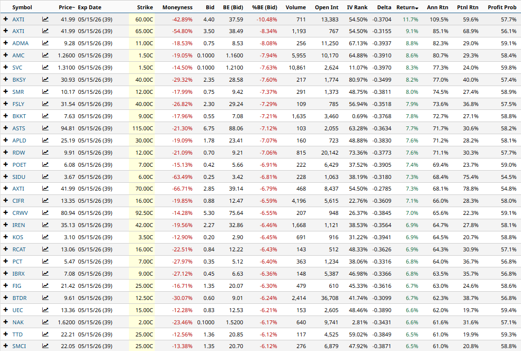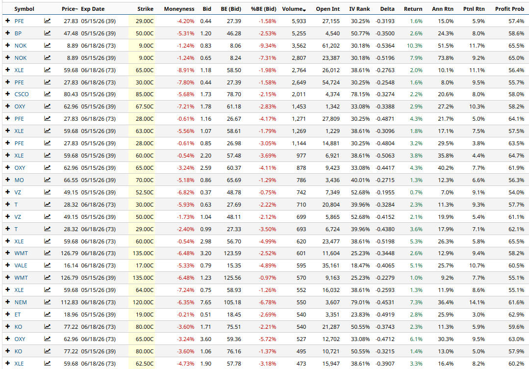 The May 15th $29-strike call option was trading yesterday for around $0.44, generating $44 in premium per contract for covered call sellers.