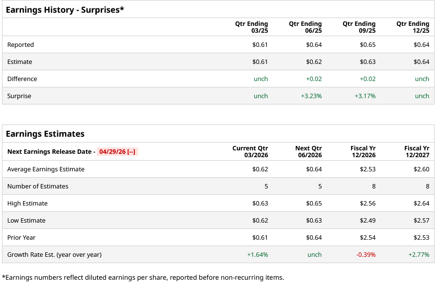 For fiscal 2026, analysts project the company’s EPS to be $2.53, down marginally from $2.54 in fiscal 2025. Moreover, its EPS is expected to rise by roughly 2.8% year over year (YoY) to $2.60 in fiscal 2027.