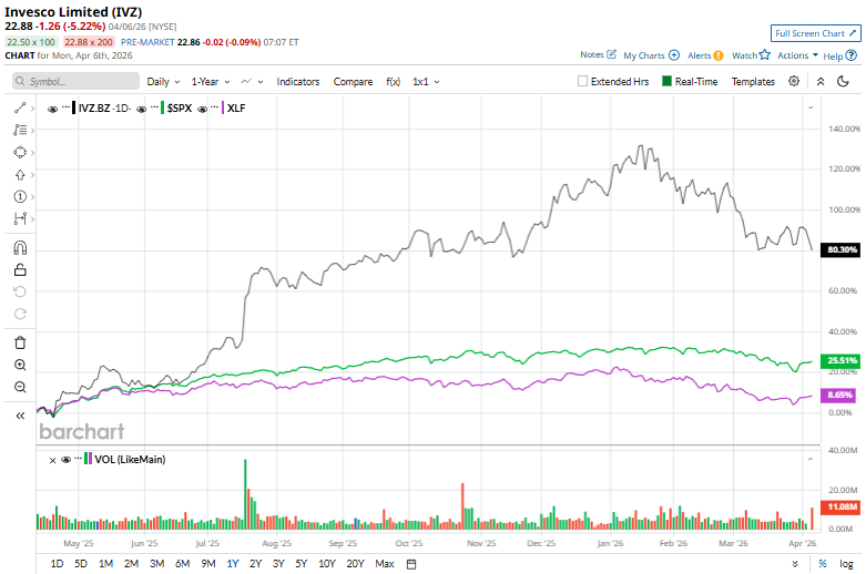 Shares of IVZ have soared 78.6% over the past 52 weeks, considerably outperforming both the S&P 500 Index's ($SPX) 30.3% return and the State Street Financial Select Sector SPDR ETF’s (XLF) 12.9% uptick over the same time period.