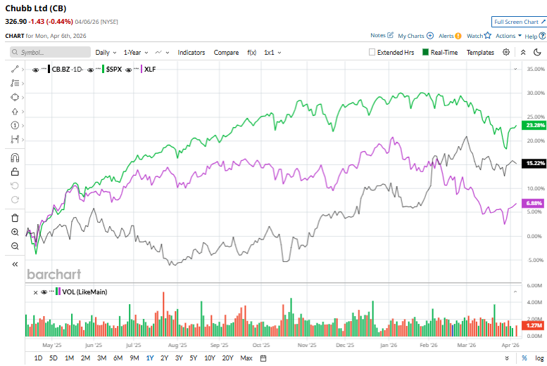 Shares of CB have surged 16.5% over the past 52 weeks, underperforming the S&P 500 Index's ($SPX) 30.3% return but surpassing the Financial Select Sector SPDR Fund’s (XLF) 12.9% rise over the same time frame.