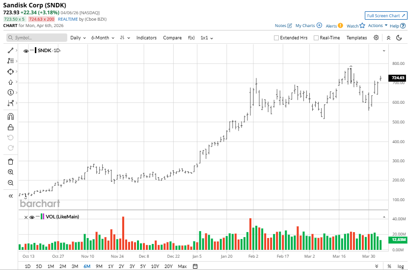 The release of TurboQuant algorithm caused a significant decline in SNDK stock’s value but it has recovered well so far this month returning 13.3%. The volatility in the stock continues to provide an attractive entry point to investors who believe the memory demand isn’t going away anytime soon.