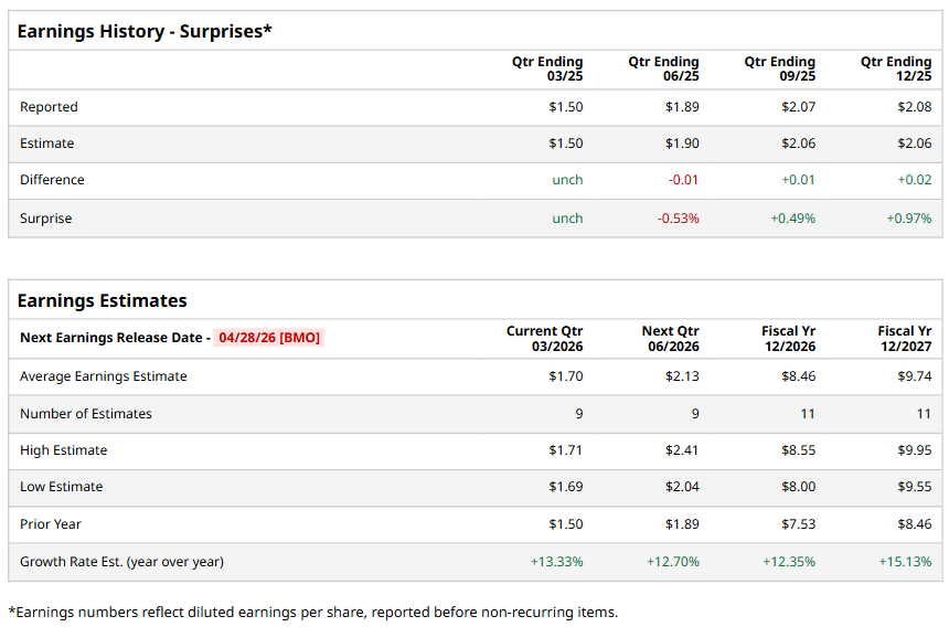 For the full year, analysts expect ECL to report EPS of $8.46, up 12.4% from $7.53 in fiscal 2025. Its EPS is expected to rise 15.1% year over year to $9.74 in fiscal 2027.
