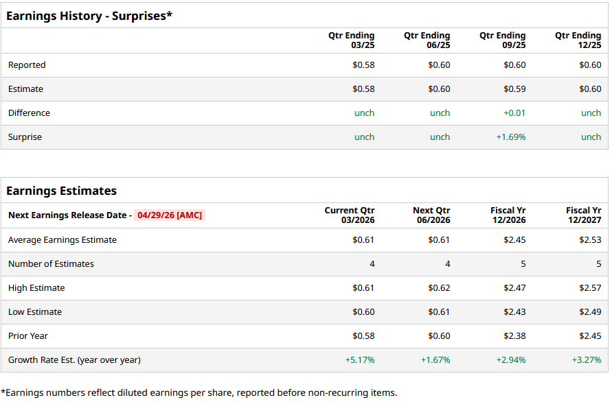 VICI is expected to release its Q1 2026 earnings on Wednesday, Apr. 29, after the market closes. Ahead of the event, analysts expect the company’s FFO to be $0.61 on a diluted basis, up 5.2% from $0.58 in the year-ago quarter. The company has met or exceeded Wall Street’s FFO estimates in each of its last four quarters.