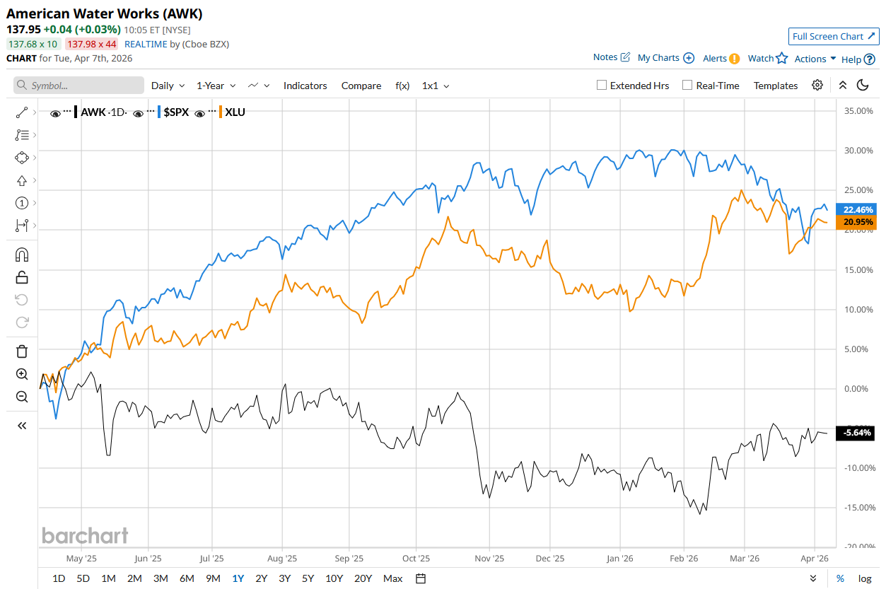 AWK stock has declined 3% over the past 52 weeks, underperforming the S&P 500 Index’s ($SPX) 29.9% rise and the State Street Utilities Select Sector SPDR ETF’s (XLU) 26% return during the same time frame.