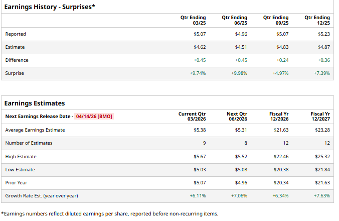 Analysts also estimate the financial company to end FY26 with adjusted earnings of $21.63 per share, up 6.34% YoY, with a street high of $22.46 and a low of $20.34 per share.
