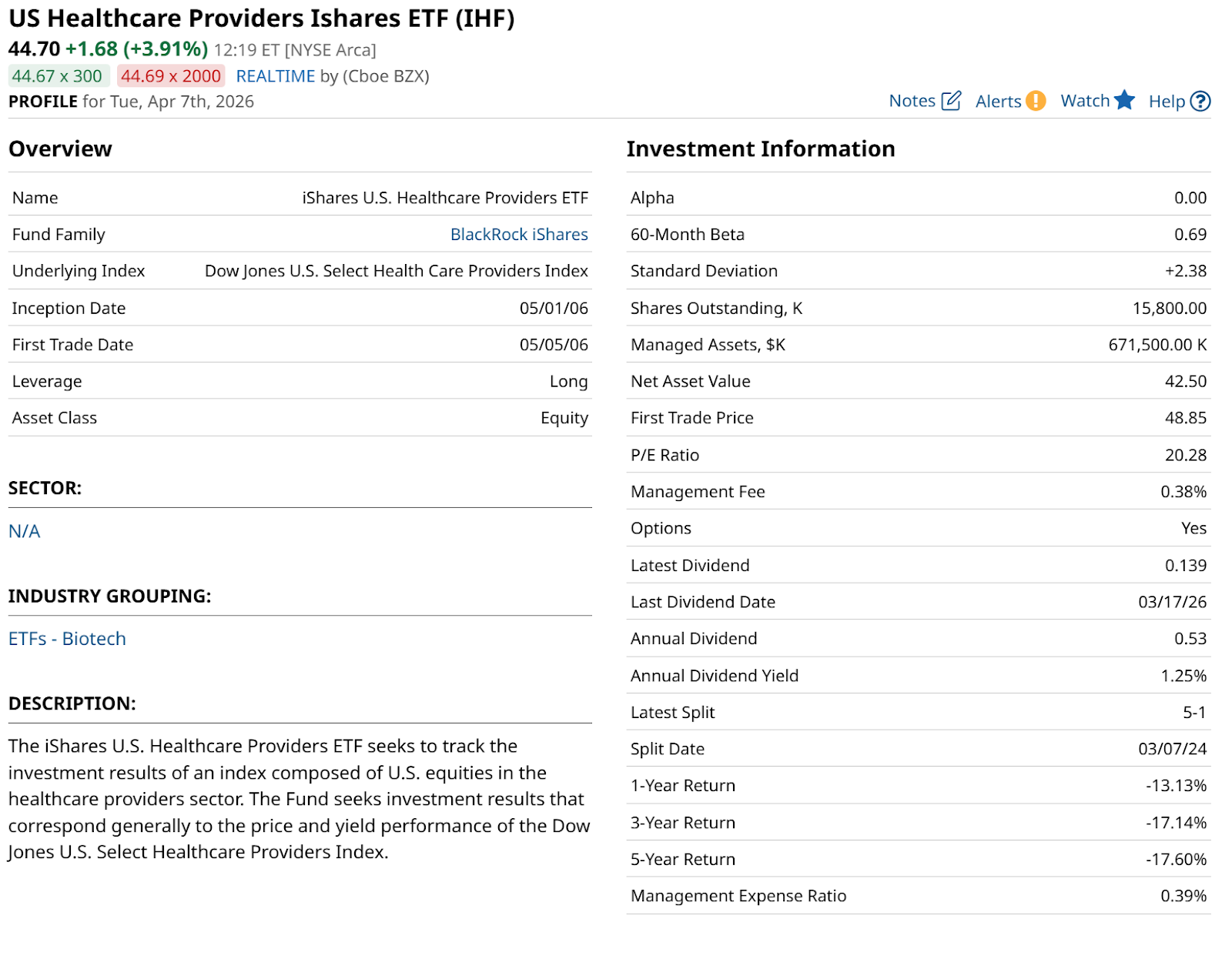 For those looking to play the potential recovery of this healthcare giant, there is a specialized vehicle that offers a broader way to capture this industry-wide pivot: the iShares U.S. Healthcare Providers ETF (IHF).