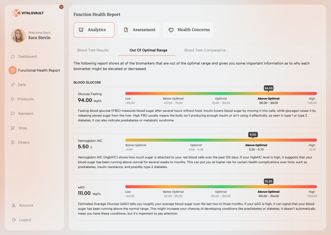 Shabnam M. — "For an incredibly affordable price, I got an extensive panel covering 150+ biomarkers across metabolic, hormonal, cardiovascular, inflammation, and more. The results came with clear, clinician-backed interpretations that highlight not just 'normal' but truly optimal ranges. Compared to Function Health, Vitals Vault delivers similar or broader depth at a better value — without hidden fees or upsells."