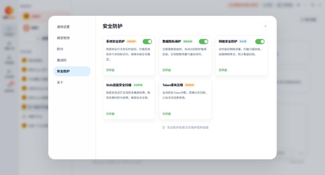 U2Claw builds a robust security foundation from the ground up. It incorporates real-time system security monitoring, end-to-end encrypted data privacy protection, firewall-level network defense, and multi-layer security checks for Skills. With multiple layers of protection in place, it establishes a strong security barrier and ensures that sensitive data is processed entirely within a local closed loop—eliminating the need to choose between security and efficiency.