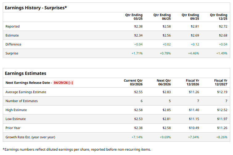 For the current year, analysts expect the company's EPS to be $11.26, up 7.3% from $10.49 in fiscal 2025. Its EPS is anticipated to rise 8.3% year over year to $12.19 in fiscal 2027.