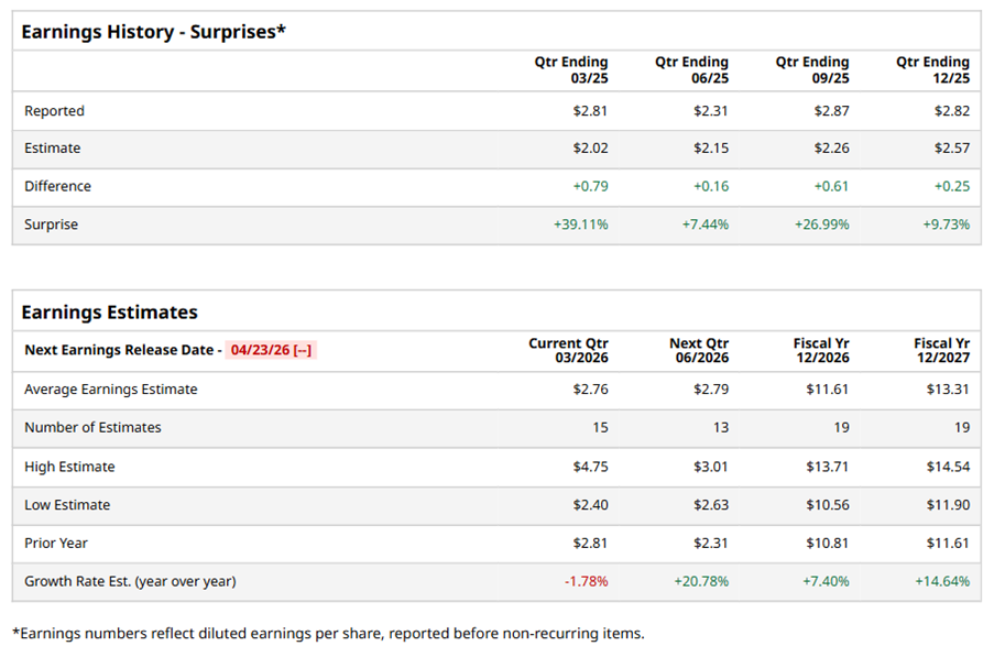 For the full year, analysts expect GOOG to report EPS of $11.61, up 7.4% from $10.81 in fiscal 2025. Its EPS is expected to rise 14.6% year over year to $13.31 in fiscal 2027.