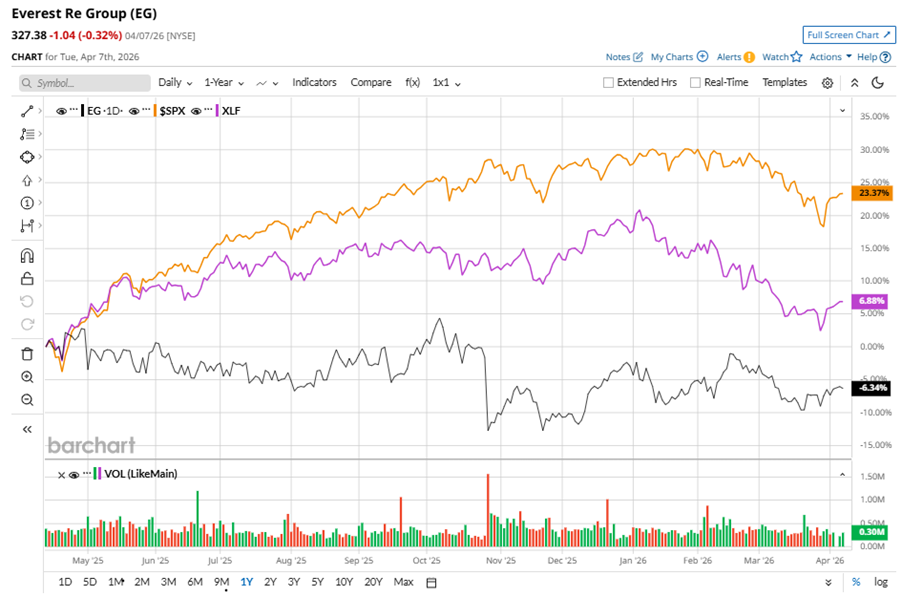 EG stock has underperformed the S&P 500 Index’s ($SPX) 30.7% gains over the past 52 weeks, with shares up marginally during this period. Similarly, it lagged behind the State Street Financial Select Sector SPDR ETF’s (XLF) 13.1% returns over the same time frame.