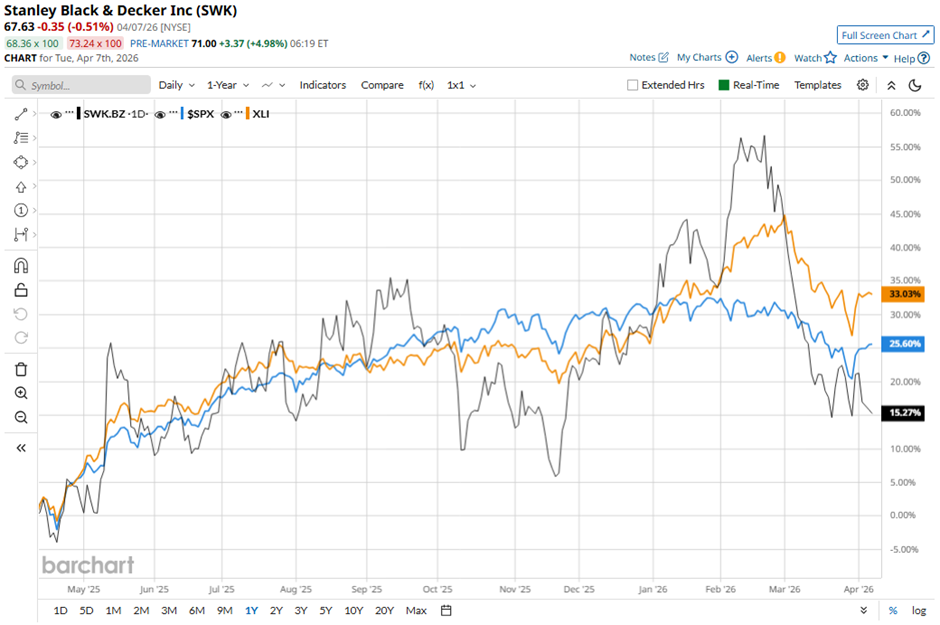 Shares of Stanley Black & Decker have increased 14.1% over the past 52 weeks, lagging behind both the S&P 500 Index's ($SPX) 30.7% gain and the State Street Industrial Select Sector SPDR ETF’s (XLI) 39.9% surge over the same period.