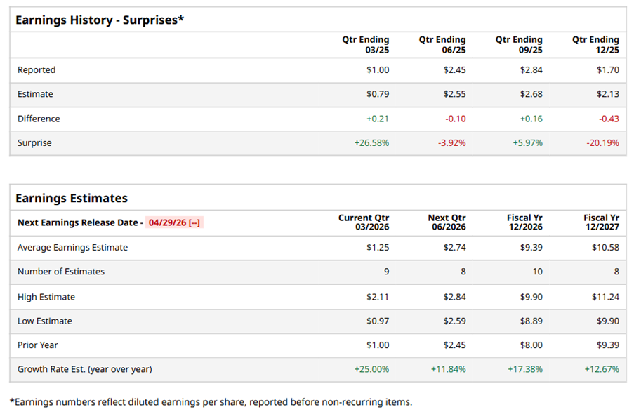 Vulcan Materials Company (VMC), headquartered in Birmingham, Alabama, produces and supplies construction aggregates. Valued at $36.7 billion by market cap, the company’s principal product lines are aggregates, asphalt mix and concrete, and cement. The largest producer of construction aggregates is expected to announce its fiscal first-quarter earnings for 2026 on Wednesday, Apr. 29.