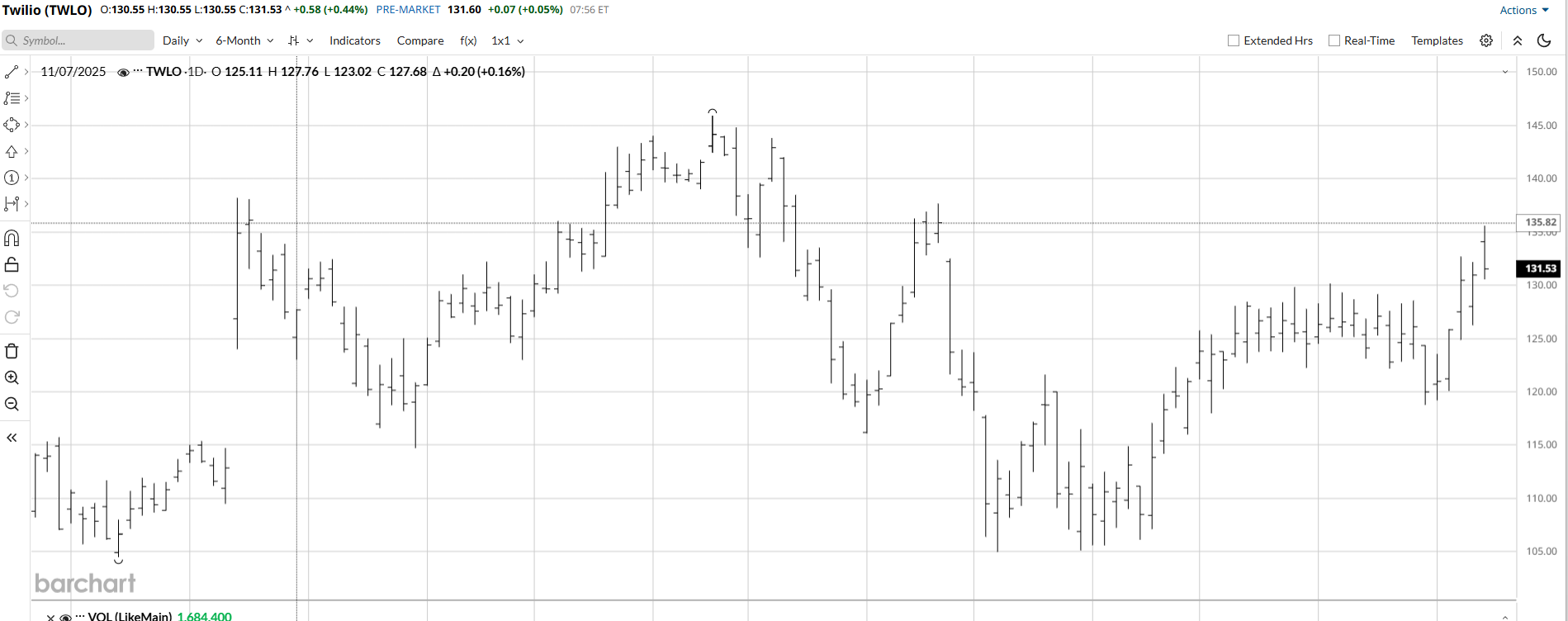 Twilio's software facilitates communication and the development of communication tools while also providing businesses with other types of software, including Segment, a data-analysis tool. The San-Francisco based firm's revenue climbed 14% in the fourth quarter versus the same period a year earlier to $1.37 billion, while its earnings per share, excluding some items, advanced to $1.33 in Q4 from $1 in Q4 of 2024.