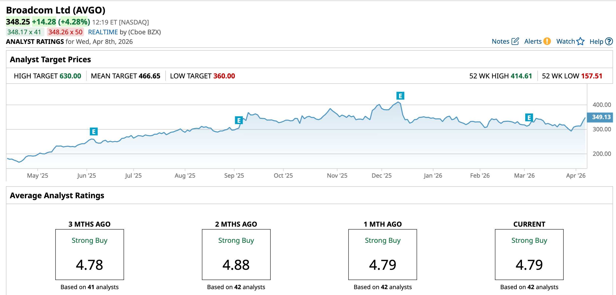 Recently, several analysts have reiterated their positive ratings. Mizuho reaffirmed its bullish stance on Broadcom with an “Outperform” rating and $480 price target following an extended TPU partnership with Google and Anthropic through 2031.
