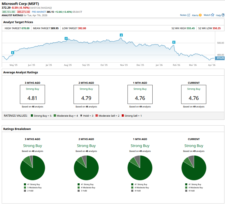 Meanwhile, the markets have been bearish on MSFT stock, but the sell-side analyst community has largely maintained its bullish bias. Most recently, Goldman Sachs reiterated its “Buy” rating on MSFT while reiterating its $600 target price, which is slightly ahead of the stock’s mean target price and represents a potential upside of 61% over the current price levels.