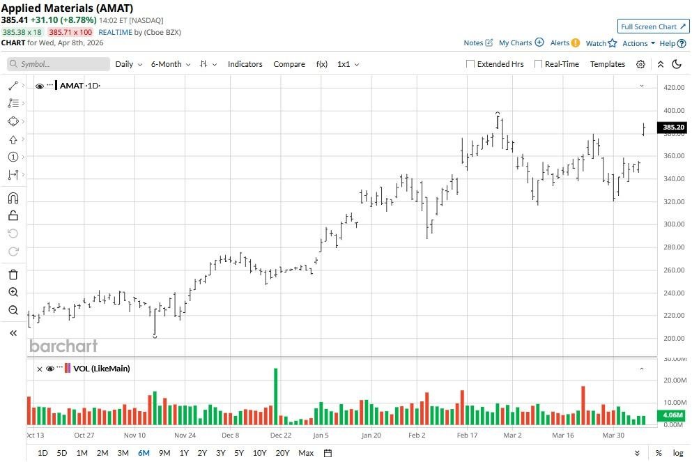 Following today’s rally, Applied Materials shares are up nearly 45% versus the start of 2026.