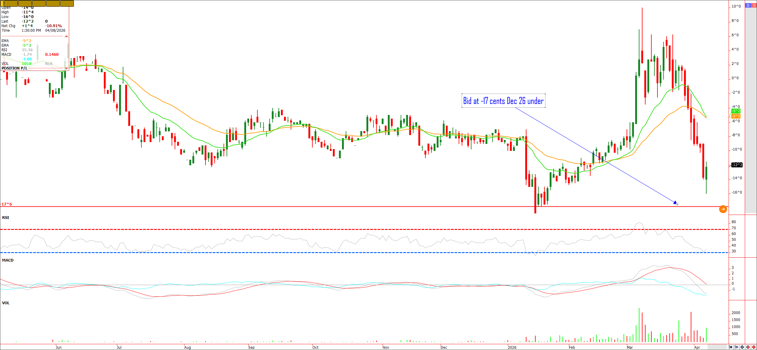 Corn continues to search for a bottom as war premium erodes while planting intentions increase. Funds had previously pushed out to a 300k long but have since pared maybe 80 to 100K of those positions. Still an aggressive long in the market ahead of planting and growing season. Managed funds in prior years have cleaned out their books prior to key yield development time, meaning they liquidate and return back near parity prior to re owning the grain ahead of key yield development time in July. If that premise holds look for further liquidation or unwinding to continue, provided that there are no major planting delays after mid-April. All that being said, we have a major conflict in the Middle East that could foment into regional chaos despite the latest calls for a two-week ceasefire. Not to mention Russia and Ukraine are still firing at each other. I’m looking to buy the Dec 26/Dec 27 corn spread on a dip. The spread closed at 12 cents Dec 26 under. Look to be a buyer at 19 to 17 cents Dec 26 under at a potential double bottom should the spread trade there.