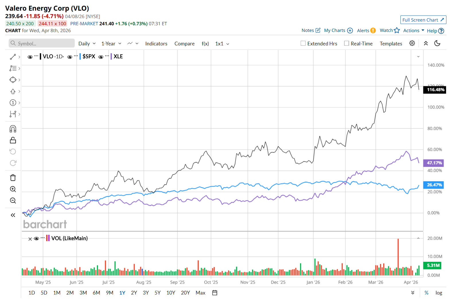 Together, resilient margins, geopolitical tailwinds, and consistent shareholder returns have helped keep VLO ahead of the broader market.