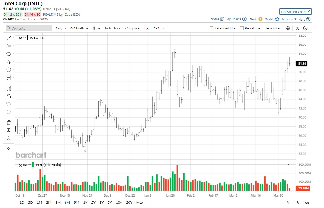 With the company focused on capitalizing on the significant AI-driven opportunity, INTC stock has trended higher by 57% in the last six months. The positive momentum is likely to sustain after Intel reports Q1 results.