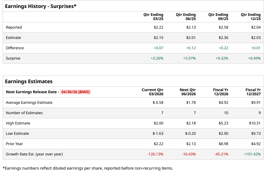 Rahway, New Jersey-based Merck & Co., Inc. (MRK) is an international healthcare company that offers human health pharmaceuticals across various areas, including Keytruda, Keytruda Qlex, Welireg, Gardasil, ProQuad, M-M-R II, Varivax, Vaxneuvance, and other brands. Valued at a market cap of $304.5 billion, the company is expected to release its Q1 2026 earnings on Thursday, Apr. 30, before the market opens.