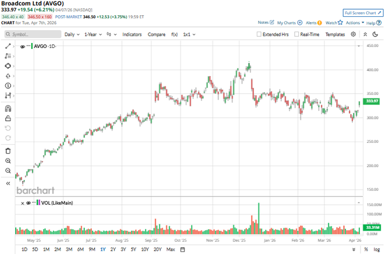 Therefore, as Broadcom gained 6.2% intraday on Apr. 7 after this partnership announcement, should you consider investing in the stock?
