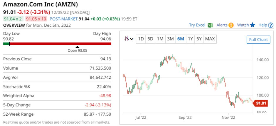 Amazon (AMZN) has drop over 45% year-to-date and is rated a 100% Sell with a strongest short term outlook on maintaining the current direction. Â