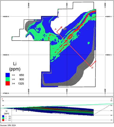 The SRK study reported a significant lithium clay deposit with a high-grade core and peripheral halo as stated in Table 1. The MRE was based on a lithium carbonate price of US$24,000 per tonne.