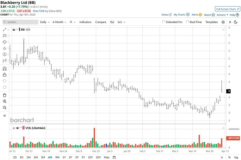 At its intraday peak, BlackBerry stock was seen trading at its year-to-date high of $4.02 on April 9.