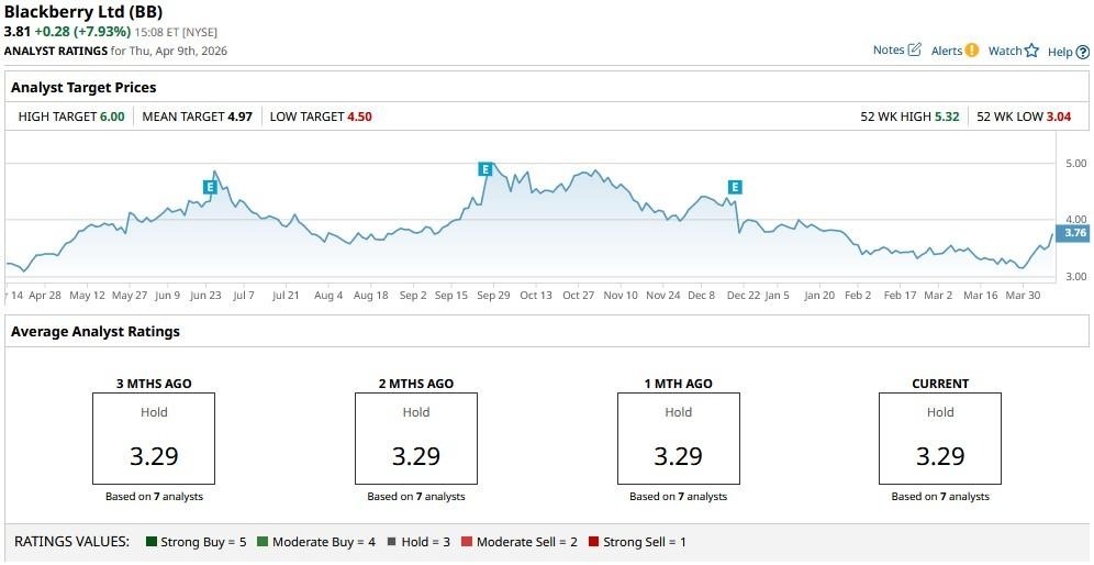 While the consensus rating on BB stock sits at a “Hold," the mean price target of $4.97 indicates potential upside of about 30% from current levels.