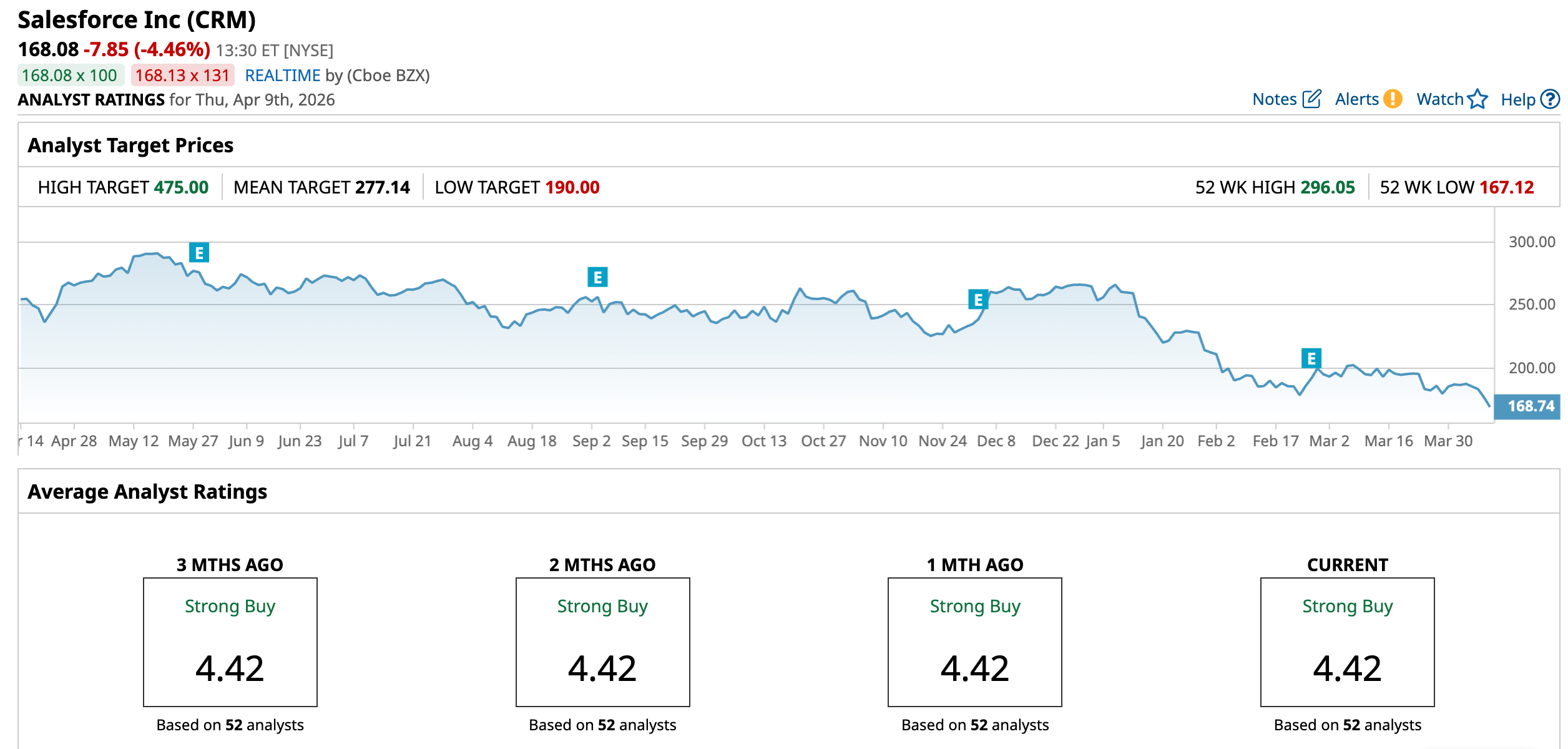Instead of replacing software platforms, AI is more likely to be embedded within them, driving new use cases, not destroying old ones. The firm believes the worst may already be behind for software stocks. In fact, Wedbush sees the recent pullback in Salesforce and ServiceNow as “disconnected’ from their long-term AI monetization potential. So, given this bullish outlook, is the current dip in CRM and NOW a buying opportunity for investors?