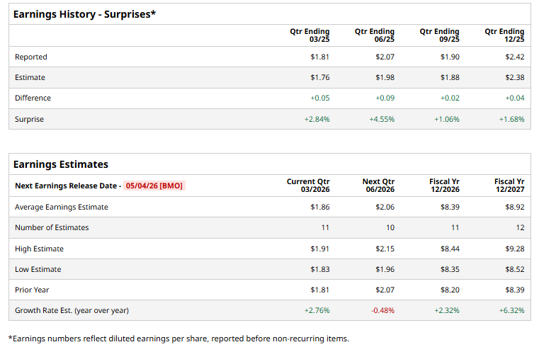 The company is slated to announce its fiscal Q1 2026 results before the market opens on Monday, May 4. Ahead of the event, analysts expect Zimmer Biomet to report an adjusted EPS of $1.86, up 2.8% from $1.81 in the year-ago quarter. It has surpassed Wall Street's bottom-line estimates in each of the past four quarterly reports, which is admirable.