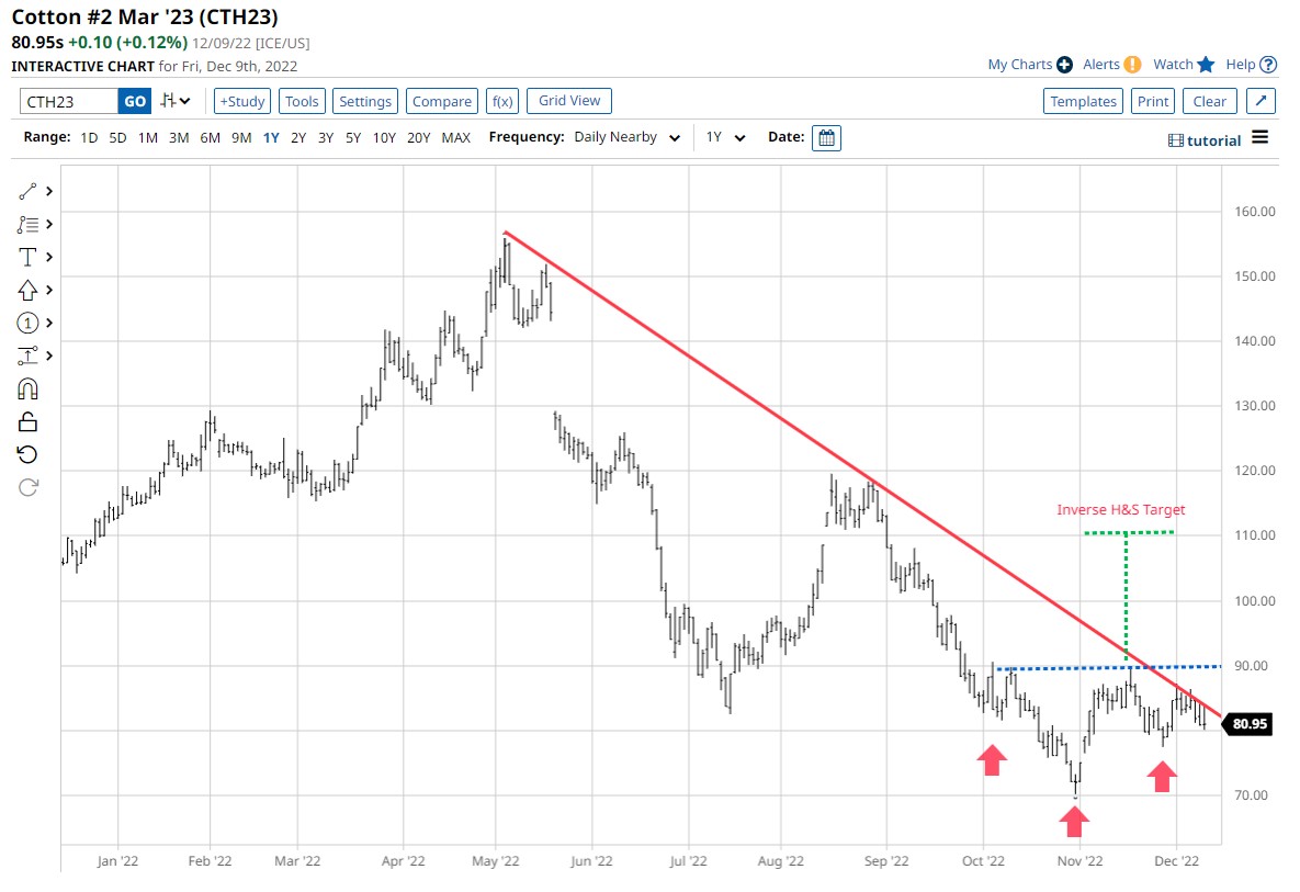 I wrote a recent article for Barchart titled "Will Cotton Find a Level to Bounce From?" The cotton market did find that level and had a decent rally before turning sideways.Â