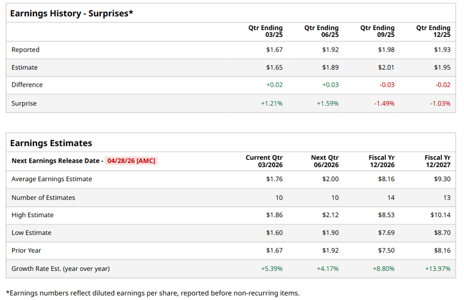 Waste Management, Inc. (WM), headquartered in Houston, Texas, provides environmental solutions to residential, commercial, industrial, and municipal customers. With a market cap of $93.2 billion, the company provides waste management services including collection, transfer, recycling, resource recovery, and disposal services, and operates waste-to-energy facilities. The leading provider of comprehensive waste management services is expected to announce its fiscal first-quarter earnings for 2026 after the market closes on Tuesday, Apr. 28.